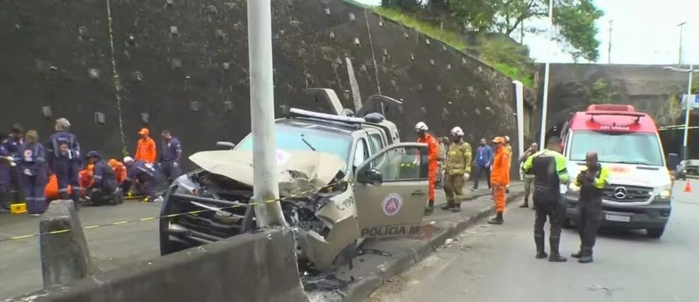 Grave acidente com viatura da PM fere três policiais em Salvador