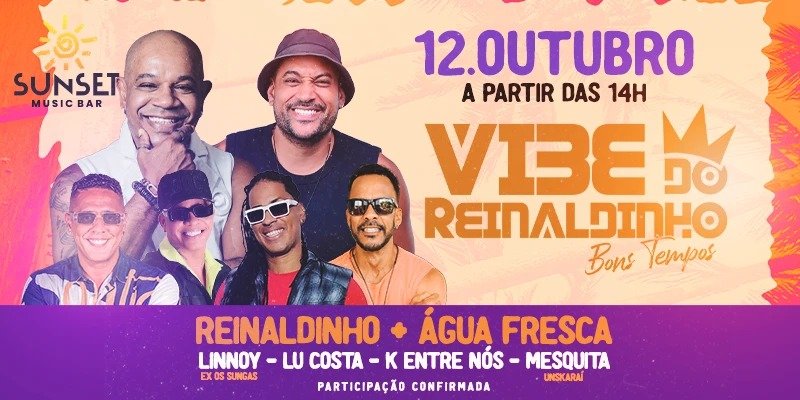 O cantor Reinaldinho, ex-integrante do Terra Samba, apresenta no dia 12 de outubro, a partir das 14h, no Sunset Music, em Pituaçu, Salvador, o projeto “Vibe do Reinaldinho – Bons Tempos”. A estreia contará com os shows da banda Água Fresca e dos artistas Linnoy (ex-Os Sungas), Lu Costa, K Entre Nós e Mesquita (Unskarai), que dividem o palco com Reinaldinho em uma celebração dos clássicos do pagode baiano. A iniciativa busca trazer de volta a atmosfera que marcou gerações, quando coreografias embaladas por letras irreverentes dominaram programas de televisão, rádios e palcos de todo o Brasil. Foi nesse período que o pagode baiano se consolidou como fenômeno cultural, com grupos e artistas se tornando presença constante em shows lotados, desde bares da capital até apresentações para milhares de pessoas em grandes eventos nacionais. O novo projeto atende ao pedido de fãs que demonstram saudade daquela época considerada inesquecível. A proposta é revisitar os grandes hits, recriar o clima das danças em grupo e relembrar a energia das noites soteropolitanas em que o pagode movimentava casas de show e atraía multidões logo após as saídas das praias. Além de Salvador, a Vibe do Reinaldinho tem como objetivo circular pelo Brasil, levando a outros estados a mesma vibração que marcou a juventude dos anos 1990. Agenda O quê: Vibe do Reinaldinho – Bons Tempos Quem: Reinaldinho, Água Fresca, Linnoy, Lu Costa, K Entre Nós e Mesquita Quando: 12 de outubro, a partir das 14h Onde: Sunset Music – Rua Araújo Bastos, 03, Orla de Pituaçu, Salvador Ingressos: à venda no Ticket Maker Informações: (71) 99129-7965 Vendas: https://vendas.ticketmaker.com.br/?ct=5894&cl=379&fbclid=PAZXh0bgNhZW0CMTEAAac6I34l2kiivcdZ5m1H5K5lW5DnjrCSh6FbJCLN88NJLy52AtiFMVzuAtjkfw_aem_1zQt8sLti4aprJdtj7Lc8g Classificação indicativa: Classificação Etária: 18 anos