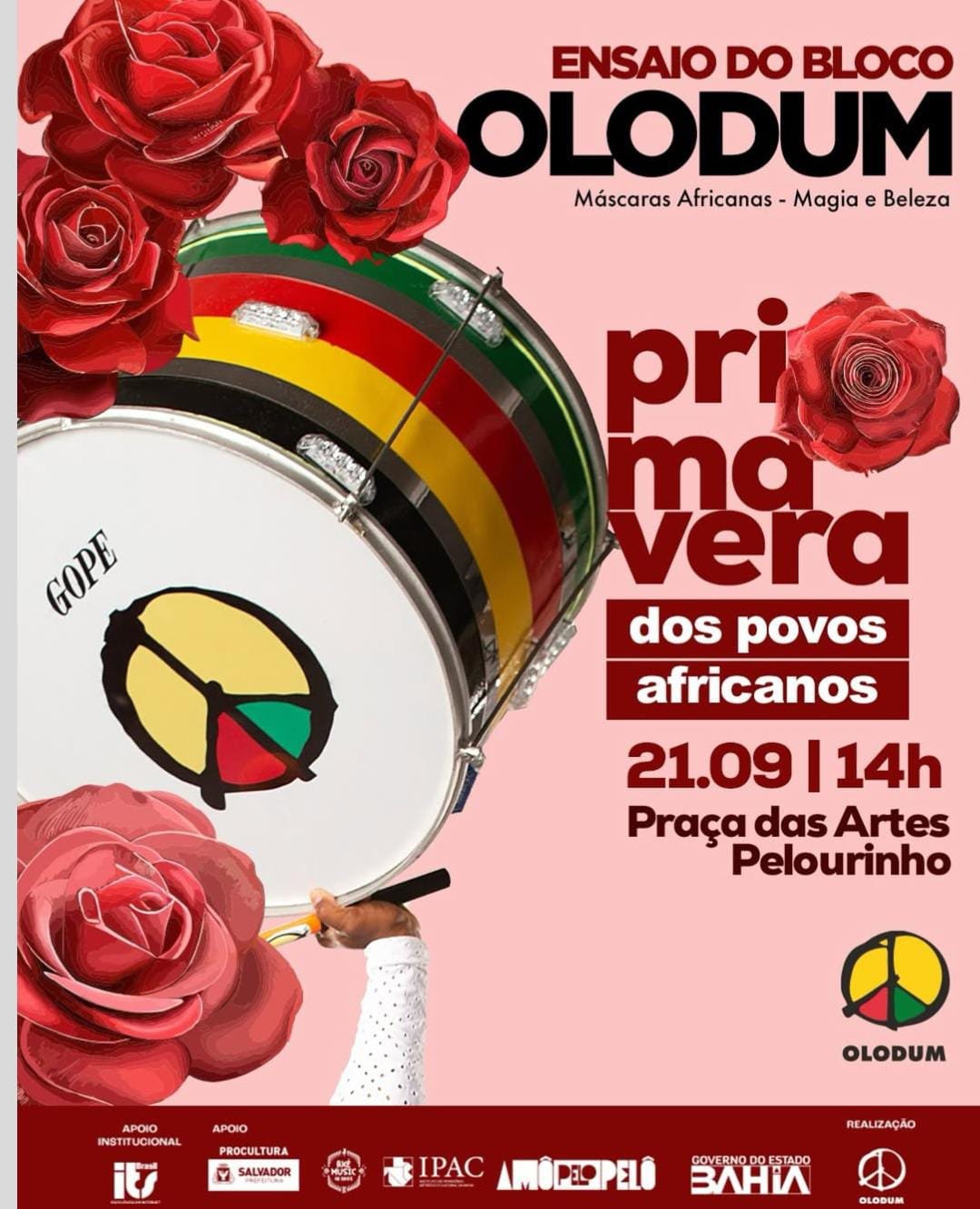 No próximo dia 21 de setembro (domingo), o Bloco Olodum promove um ensaio temático em celebração à “Primavera dos Povos Africanos”. O evento acontece na Praça das Artes, no Pelourinho, em frente à Casa do Olodum, a partir das 14h, reunindo música, dança e expressões culturais.O ensaio reforça a importância do Olodum como um símbolo de resistência cultural, difundindo a força do samba-reggae e o protagonismo negro na música e na arte baiana, enquanto mantém viva a tradição que atrai fãs de todo o Brasil ao Pelourinho.O evento terá vendas oficiais pela Casa do Olodum e pela plataforma Meu Bilhete. Agenda CulturalEnsaio do Bloco OlodumDia 17 de Agosto(Domingo)Banda no palco a partir das 14h até as 18hLocal: Praça das Artes, Pelourinho – Em frente à Casa do OlodumIngressos – 1º LoteMeia Solidária Unissex -R$ 70,00 + R$ 7,00 taxa = R$ 77,00Individual Solidário – R$ 80,00 + R$ 8,00 taxa= R$ 88,00Individual Inteira – R$ 140,00 + R$ 14,00 taxa= R$ 154,00Vendas: https://www.meubilhete.com.br/ensaio-do-bloco-olodum ou presencialmente na Casa do Olodum (sem taxas)Classificação Etária: 18 anos