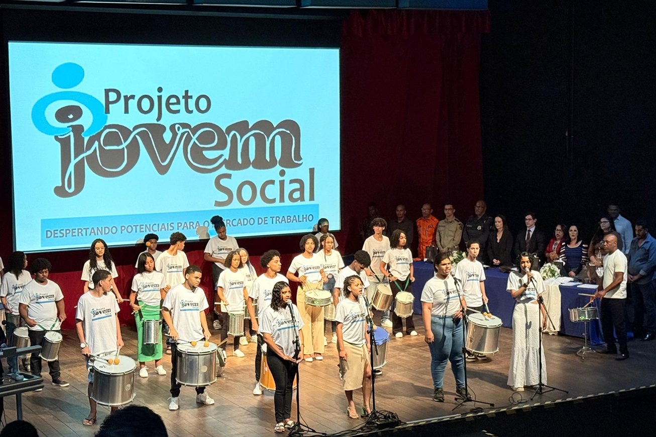 A iniciativa tem como objetivo promover inclusão social e desenvolvimento integral de jovens em situação de vulnerabilidade O Centro de Cultura Amélio Amorim sediou a cerimônia de certificação da quinta turma do Projeto Jovem Social, que formou cerca de 50 adolescentes, com idades entre 12 e 18 anos. A iniciativa tem como objetivo promover inclusão social e desenvolvimento integral de jovens em situação de vulnerabilidade, oferecendo ações educativas, capacitação profissional, além de suporte psicológico e social. Ao longo do programa, os participantes desenvolveram competências pessoais e profissionais, ampliando as perspectivas de inserção no mercado de trabalho e fortalecendo vínculos familiares e comunitários. Os adolescentes certificados foram encaminhados por instituições da rede de proteção e garantia de direitos, entre elas a Unidade de Semiliberdade Resgate Cidadão, os CREAS, o Abrigo Municipal Raul Freire e o Centro Comunitário Luz e Labor. Durante a solenidade, também foram premiadas as três melhores redações produzidas no decorrer das atividades. Os vencedores receberam prêmios em dinheiro: R$ 500,00 (1º lugar), R$ 400,00 (2º lugar) e R$ 300,00 (3º lugar). O evento reuniu autoridades e representantes de instituições parceiras, entre eles: Annelise Leal (Ministério Público do Trabalho), Gabriel Figueiredo (Ministério Público da Bahia), Capitão PM Cleiton (Comando de Policiamento Regional Leste), Subtenente Josafá Santos (Corpo de Bombeiros), delegada Lorena Almeida (Polícia Civil), Sinara Lima (UEFS), Gerusa Sampaio (secretária de Desenvolvimento Social), Edson Barbosa (subsecretário de Prevenção à Violência), Paola Rizzi (CIEE Feira de Santana) e Josué Costa (presidente do Centro Comunitário Luz e Labor). Na ocasião, a secretária de Desenvolvimento Social, Gerusa Sampaio, destacou a importância do projeto: “Quero parabenizar os jovens e todos os profissionais envolvidos. Esse projeto é uma porta de inclusão e o início de grandes oportunidades que surgirão para cada um de vocês”.