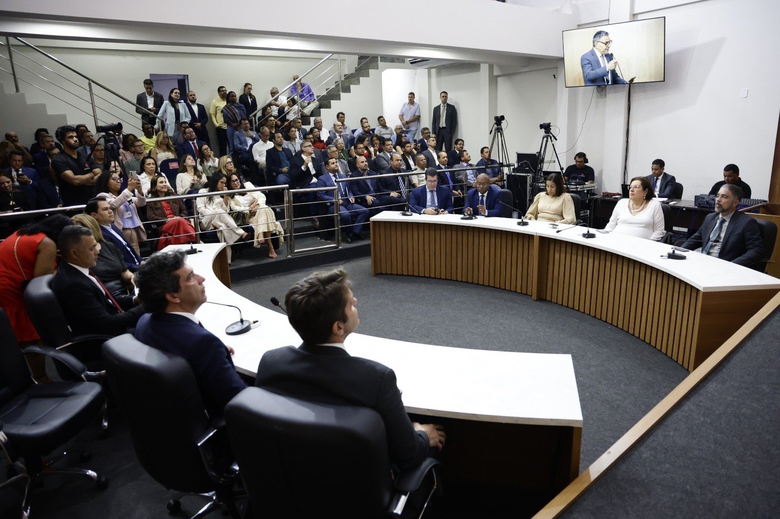 A Promotoria Regional de Irecê tornou-se na noite desta quarta-feira, dia 24, e permanece até sexta, dia 26, a sede administrativa do Ministério Público da Bahia. O evento de instalação do ‘PGJ Itinerante’ no município ocorreu com a presença de diversas autoridades, na sede da Câmara Municipal de Irecê. A mesa de abertura contou com a presença do procurador-geral de Justiça Pedro Maia; do secretário estadual de Justiça e Direitos Humanos, Felipe Freitas; do prefeito de Irecê, Murilo Franca Paiva Silva; presidente da Câmara Municipal de Irecê, Moisés Filocre; desembargador Ricardo Régis Dourado, representando o Tribunal de Justiça; e do presidente da Associação dos Membros do Ministério Público da Bahia (Ampeb), promotor de Justiça Lucas Velloso Santana. Compuseram a extensão de mesa o corregedor-geral do MPBA, procurador de Justiça Paulo Marcelo Costa; procuradora-geral de Justiça Adjunta Norma Cavalcanti; procuradora-geral de Justiça Adjunta para Assuntos Jurídicos, Wanda Valbiraci; chefe de gabinete da Procuradoria-Geral de Justiça, Fabrício Patury; secretário-geral do MPBA, André Lavigne; secretário-geral adjunto do MPBA, Luís Alberto Vasconcelos Pereira; corregedor administrativo do MPBA, Roberto Gomes; coordenador Regional de Irecê, Antônio Leal Filho; coordenador Regional de Jacobina, Jair Antônio Silva de Lima; coordenadora de Gestão Estratégica do MPBA, Patrícia Medrado; e o prefeito de Jussara e diretor da União dos Município da Bahia, Tassiano Mendes da Silva, representando a UPB.