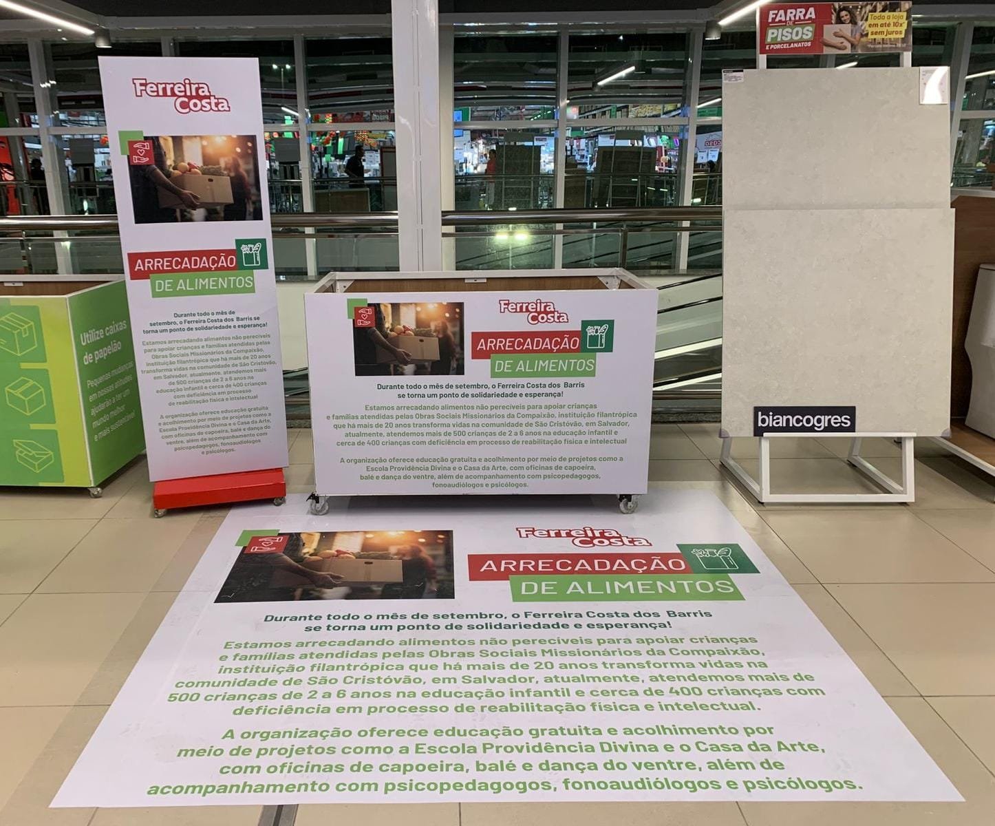 Objetivo da ação é doar o montante arrecadado para as Obras Sociais Missionários da Compaixão A Ferreira Costa dos Barris, em parceria com as Obras Sociais Missionários da Compaixão, está realizando uma campanha de doação de alimentos não perecíveis. Até 20 de outubro, uma urna estará à disposição dos clientes e visitantes para receber os donativos. Todo o montante arrecadado será destinado às Obras Sociais Missionários da Compaixão, localizada no bairro de São Cristóvão, em Salvador. A urna de doação está posicionada no piso 1 Farol da Barra, dentro da loja. “É emocionante ver a solidariedade se transformar em gestos concretos. Esses alimentos vão chegar às nossas escolas comunitárias, ajudando a nutrir não só o corpo, mas também a esperança e o sorriso de nossas crianças e famílias atendidas pela gente”, destaca Gilmar de Oliveira, presidente da instituição. Para Pedro Souto, gerente geral da Ferreira Costa dos Barris, essa campanha reforça o compromisso do home center em sempre estar ao lado de iniciativas que fazem o bem. Queremos não apenas oferecer produtos e serviços, mas também promover ações que façam diferença na vida das pessoas. Cada doação recebida é um passo importante para fortalecer os laços de solidariedade que nos unem”. Sobre a Ferreira Costa Com 140 anos de história, a Ferreira Costa (@ferreiracosta), maior Home Center do Nordeste, está presente nos estados de Pernambuco, Bahia, Sergipe, Paraíba e Rio Grande do Norte, levando ao consumidor mais de 80 mil itens para casa, construção e decoração. Além de suas nove lojas, a Ferreira Costa também possui o e-commerce www.ferreiracosta.com e o App, com entrega para todoBrasil.