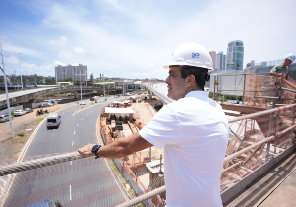 O prefeito de Salvador, Bruno Reis (União Brasil), realizou na manhã deste sábado (4) uma vistoria nas obras do viaduto direcional localizado na frente do Shopping da Bahia. Com 86% dos serviços já realizados, a estrutura tem como objetivo melhorar a mobilidade numa das regiões de maior fluxo de veículos da capital baiana, permitindo que os motoristas vindos da Avenida ACM, região do BRT Hiper, sigam no sentido Acesso Norte sem passar pela Ligação Iguatemi-Paralela (LIP), em especial pelo Viaduto dos Rodoviários. Bruno deu detalhes sobre a nova estrutura “Estamos falando do novo centro comercial da cidade. Por aqui, passam 7 de cada 10 ônibus que circulam por Salvador. 30% dos veículos de toda a cidade passam por aqui diariamente. Todos sabem como era no passado, uma região extremamente engarrafada. Nós já melhoramos muito e, com mais esta obra aqui, teremos uma melhora ainda mais substancial”, disse o prefeito. O gestor municipal também comentou como o viaduto vai beneficiar o trânsito. “Hoje há uma confluência aqui, em frente ao Shopping da Bahia, de quem vem da Av. Bonocô e de quem vem do Parque da Cidade e quer se deslocar seja para o Acesso Norte, para a Paralela ou para a Av. Tancredo Neves. Com essa obra, este problema será resolvido. Estamos trabalhando muito. Não é uma obra simples, é uma obra complexa.”, destacou Bruno. A intervenção viária conta com investimento de R$ 50,7 milhões, entre recursos próprios e de financiamento da Caixa Econômica Federal, e integra o projeto da Nova Av. Tancredo Neves, que reúne uma série de obras na região.