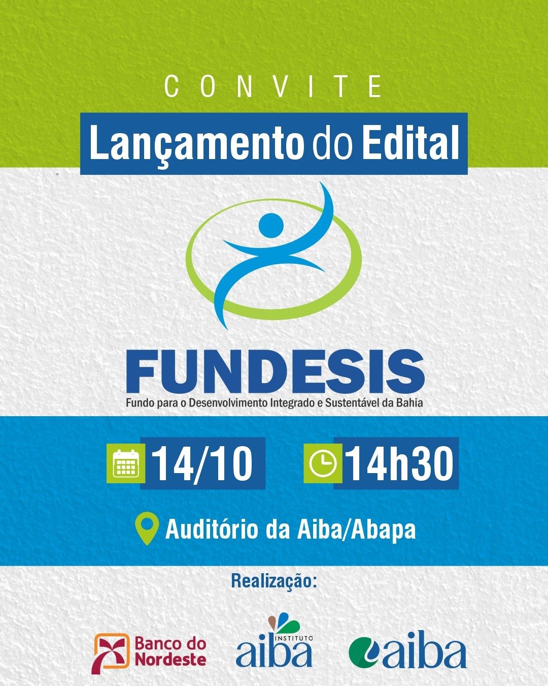 A Associação de Agricultores e Irrigantes da Bahia (Aiba), por meio do Instituto Aiba (IAiba), lançam no dia 14 de outubro, no auditório da Aiba/Abapa em Barreiras, o Edital Nº01/2026 do Fundo para o Desenvolvimento Integrado e Sustentável da Bahia (Fundesis). Às 8H30min o lançamento acontecerá em parceria com a Cooperativa de Crédito Sicredi, e às 14H30min com o Banco do Nordeste. O fundo é mantido pelo IAiba com o apoio das contribuições de produtores rurais por meio da captação do custeio da safra, no Banco do Nordeste e na Cooperativa de Crédito Sicredi, além de doações de pessoas físicas e jurídicas. “O novo edital traz uma nova oportunidade para entidades sem fins lucrativos interessadas em concorrer a recursos que serão revertidos para a promoção de mudanças sociais e para o desenvolvimento sustentável das comunidades e reforça o compromisso com o crescimento socioeconômico e o desenvolvimento sustentável da nossa região, ao permitir que novos projetos transformadores participem”, destaca o gerente geral do IAiba, Sunny Aaron. Sobre o Fundesis O Fundesis desempenha um papel importante na promoção do desenvolvimento sustentável da região que já impactou direta ou indiretamente mais de 230 mil pessoas. Ao longo de 18 anos de atuação, o fundo social investiu mais de R$ 16 milhões e aprovou mais de 328 projetos em 141 entidades localizadas em 18 municípios da região do Cerrado baiano: Barreiras, Luís Eduardo Magalhães, São Desidério, Angical, Formosa do Rio Preto, São Félix do Coribe, Cocos, Mansidão, Santa Rita de Cássia, Santana, Baianópolis, Tabocas do Brejo Velho, Riachão das Neves, Correntina, Santa Maria da Vitória, Bom Jesus da Lapa, Jaborandi e Buritirama. Assessoria de Comunicação Aiba – 10.10.2025 Serviço: Lançamento do Edital 01/2026 do Fundesis Data: 14 de outubro de 2025 (Terça-feira) Horário: 8H30min (Fundesis e Cooperativa de Crédito Sicredi) Horário: 14H30min (Fundesis e Banco do Nordeste) Local: Auditório da Aiba/Abapa em Barreiras, Bahia.