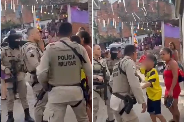 Uma festa de Dia das Crianças terminou em confusão no bairro de Pirajá Velha, em Salvador, no último domingo (12). Um vídeo que circula nas redes sociais mostra o momento em que um policial militar dá um tapa no rosto de uma mulher após ela arremessar uma lata em direção aos agentes. A cena, registrada na Rua Baixa da Fonte, chocou moradores e provocou gritos de revolta dos presentes, enquanto crianças tentavam intervir para evitar uma agressão maior. Em nota, a Polícia Militar da Bahia (PM-BA) informou que a guarnição da 9ª Companhia Independente (CIPM/Pirajá) estava em patrulhamento quando foi alvo de disparos de arma de fogo feitos por criminosos misturados à população. Segundo a corporação, não houve revide, mas os policiais foram hostilizados e atingidos por objetos. O Comando da PM determinou o encaminhamento da equipe à Corregedoria para prestar esclarecimentos. Já a Secretaria da Segurança Pública da Bahia (SSP-BA) repudiou o comportamento do policial, destacando que “não é esse o modelo de policiamento determinado pelo comando da corporação”. Crédito: Reprodução