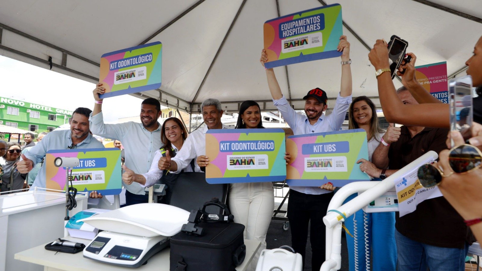Equipamentos hospitalares, kits odontológicos e de atenção básica, e um veículo administrativo foram entregues, neste sábado (18), em Laje, durante agenda do governo estadual no município do Vale do Jiquiriçá. Entre os anúncios feitos pelo governador Jerônimo Rodrigues, esteve a celebração de convênio com a Prefeitura para a reforma do centro cirúrgico do Hospital Municipal Vereador Ranulfo José de Almeida. O conjunto das ações representa um aporte de R$ 1,4 milhão, oriundo do Governo do Estado e de emendas parlamentares. Cerca de R$ 1 milhão será destinado à modernização do centro cirúrgico, que vai ampliar a capacidade de atendimento de média complexidade no Sistema Único de Saúde (SUS) pelo município. “Isso vai garantir que as pessoas não precisem ir para longe fazer uma cirurgia que pode ser feita aqui, economizando o tempo das pessoas, a espera por um acompanhamento médico”, disse o governador sobre o investimento na saúde primária, que promete reduzir a ocupação nos hospitais de alta complexidade. “Essa é uma agenda que tem a ver com a de Amargosa [mais cedo], onde autorizamos ordem de serviço para a construção de uma maternidade. Em 18 meses a gente volta para inaugurar essa maternidade regional. As mulheres do Vale [do Jiquiriçá] vão poder parir, aqui na região mesmo. Isso nos deixa muito feliz”, completou. Através da Secretaria da Saúde (Sesab) também foi cedido um kit parto para o Hospital Municipal Vereador Ranulfo José de Almeida. Integrado com os investimentos da Saúde, foi entregue a ampliação da rede de abastecimento de água da localidade Engenheiro Pontes, na zona rural. Fruto de parceria entre a Secretaria de Infraestrutura Hídrica (SIHS) e a Prefeitura de Laje, R$ 1,9 milhão foi investido para ligação de mil novas unidades, que vão beneficiar três mil habitantes. Dia D da Vacinação Além das entregas, a programação contemplou o Dia D da Multivacinação, iniciativa voltada à atualização da caderneta de vacinação de crianças e adolescentes de até 15 anos. A ação ocorreu em uma Unidade Básica de Saúde do município e ofereceu todas as vacinas do Calendário Nacional, com foco na recuperação de esquemas atrasados e no aumento da cobertura vacinal para poliomielite, sarampo, meningite, HPV, febre amarela e COVID-19. “Vacinar é um ato de amor e de responsabilidade. Cada dose representa a proteção da nossa infância e o fortalecimento da saúde pública. O Governo da Bahia está ao lado das famílias em todas as regiões para garantir esse direito”, enfatizou a secretária da Saúde, Roberta Santana. Outros postos de saúde estiveram abertos nos 417 municípios neste sábado (18). A ação integra a campanha nacional, coordenada pelo Ministério da Saúde em todo país, e segue até o dia 31 de outubro, com mutirões, ações em escolas e ampliação dos horários de funcionamento das salas de vacina.