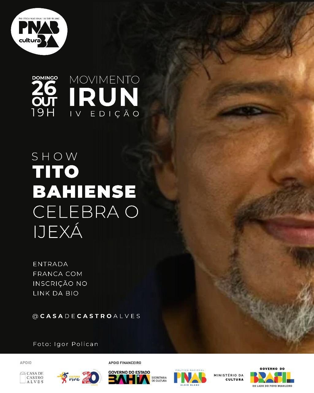how gratuito acontece neste domingo (26), na Casa de Castro Alves, e homenageia Oxum e Oxalá Neste domingo, 26 de outubro, o cantor e compositor Tito Bahiense encerra a quarta edição do Movimento Irun, na Casa de Castro Alves, no Centro Histórico de Salvador. O artista apresenta um show dedicado ao Ijexá, ritmo ancestral dos terreiros de Candomblé que ganhou as ruas através dos afoxés, em uma celebração à espiritualidade e à força da cultura afro-baiana. A entrada é gratuita. No espetáculo, Tito Bahiense conduz o público por uma experiência musical e espiritual inspirada em Oxum e Oxalá, guiada por atabaques, agogôs e melodias orquestradas. Vestido de branco, ele recria a atmosfera de um afoxé, transformando o palco em um espaço de reverência ao sagrado e ao popular. O show sintetiza a proposta do Movimento Irun de conectar arte, memória e ancestralidade. A programação do evento começa às 14h com a feira criativa Design Caboclo, seguida pela discotecagem de André Oliveira e pela roda de conversa “Bases Simbólicas, Históricas e Atuais do Ijexá”, com o percussionista Tiago Nunes, da Orkestra Rumpilezz. Idealizado como um espaço de valorização dos saberes ancestrais, o Movimento Irun — palavra da língua tupinambá que significa “irmão” ou “companheiro” — articula redes criativas entre Salvador e comunidades tradicionais da Bahia. O projeto é contemplado pelos editais da Política Nacional Aldir Blanc Bahia (PNAB) e da Política Nacional Cultura Viva, com apoio do Governo do Estado da Bahia, por meio da Secretaria de Cultura (Secult-BA), e recursos do Ministério da Cultura. ServiçoO quê: 4ª edição do Movimento IrunQuando: 26 de outubro de 2025, das 14h às 20hOnde: Casa de Castro Alves – Centro Histórico de SalvadorEntrada: Gratuita (credenciamento no local ou inscrição via formulário disponível no Instagram da Casa de Castro Alves) Crédito da Foto Divulgação Tito Bahiense Crédito João Lins