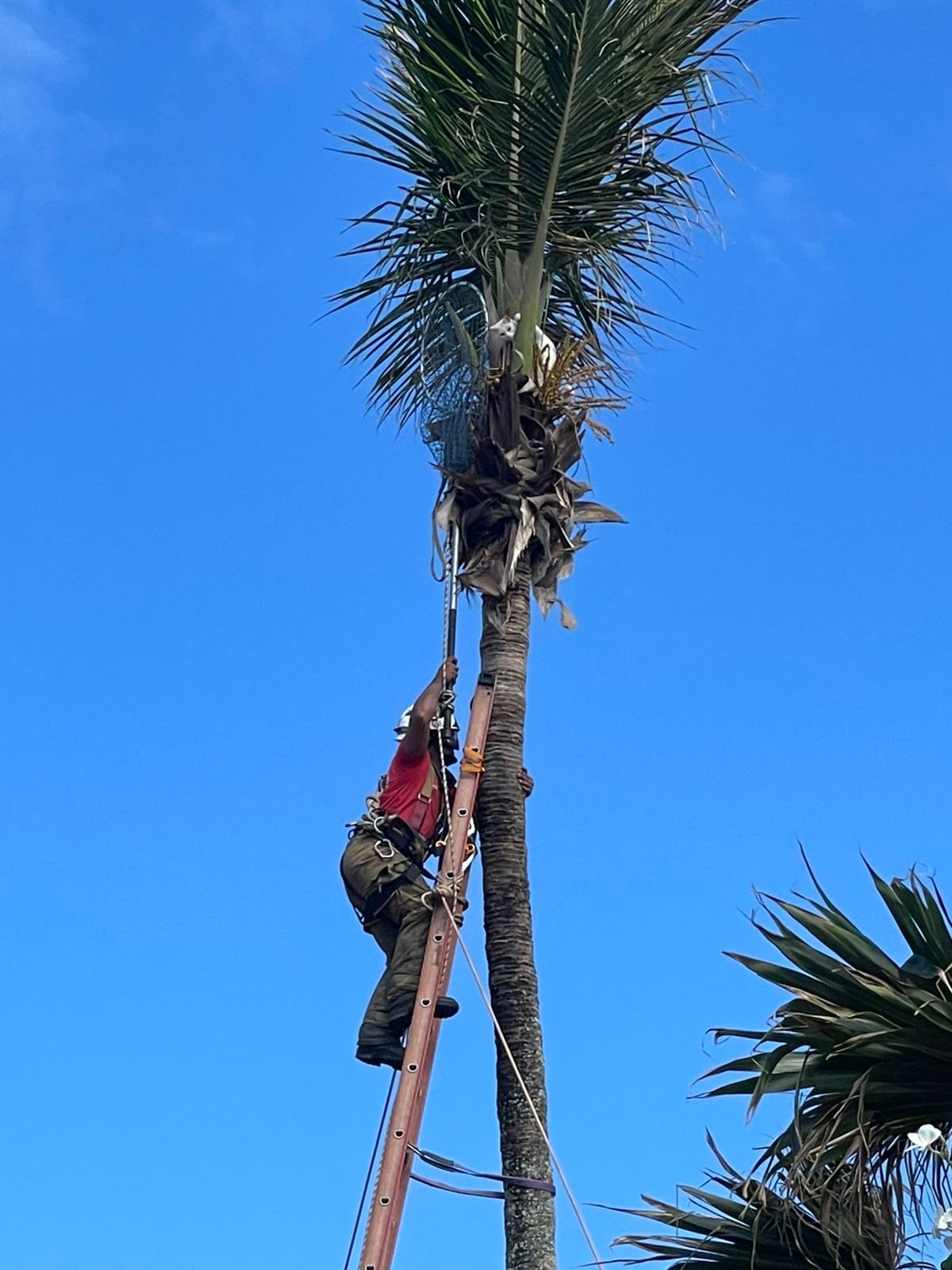Bombeiros do 3º BBM resgatam gato preso em coqueiro em Itapuã