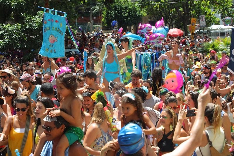A programação inclui apresentações musicais, desfiles de blocos e um banho de mar coletivo. A estrutura do evento conta com quatro pórticos de acesso, palco principal, paredão de DJs e sound system ¹ ² ³.
