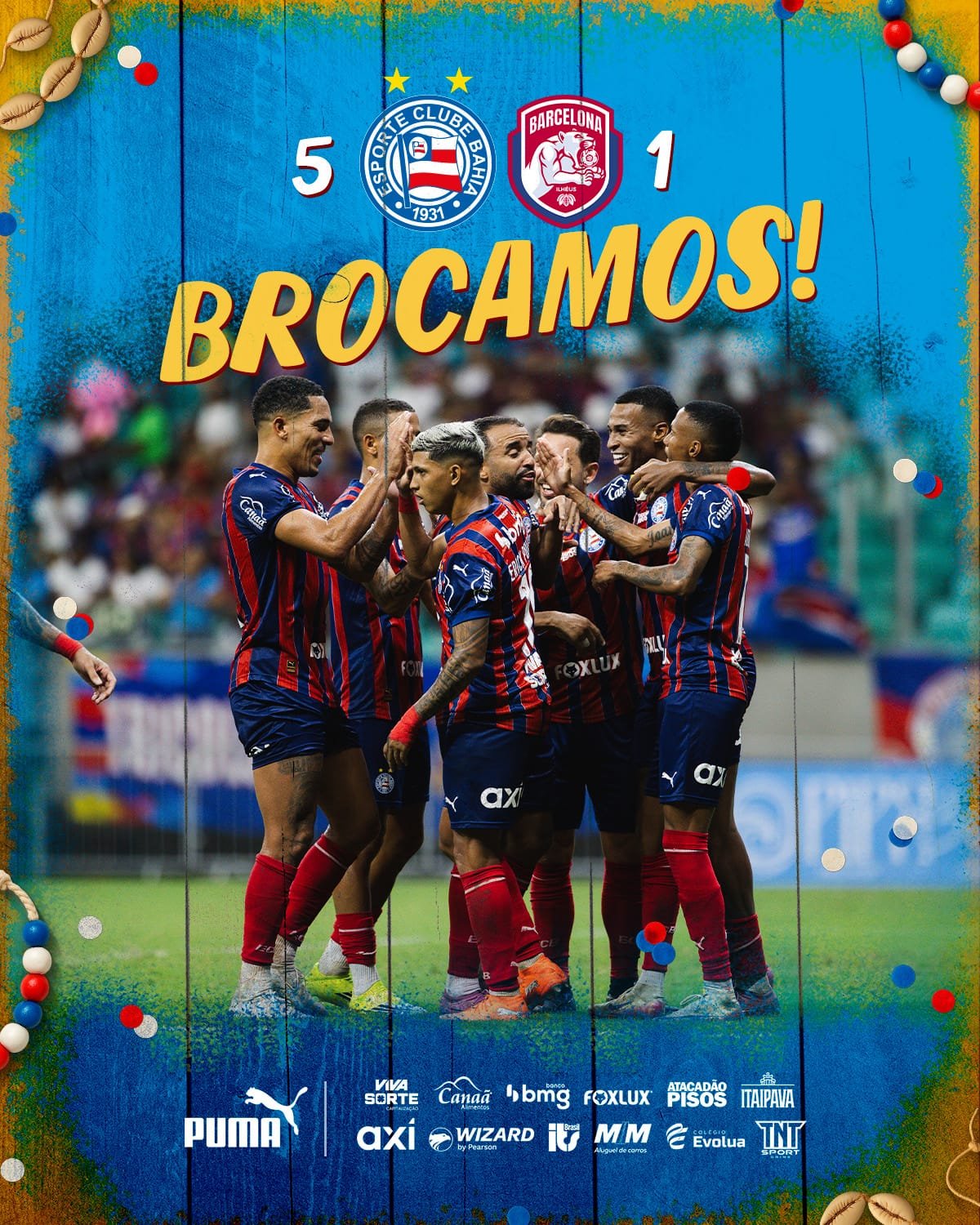 Time realiza apresentação de gala e Bahia aplica 5 a 1 no Barcelona, na arena Fonte Nova, na noite Terça (20), chega a 15 gols na competição e mantendo aproveitamento 100% de aproveitamento no Campeonato Baiano.