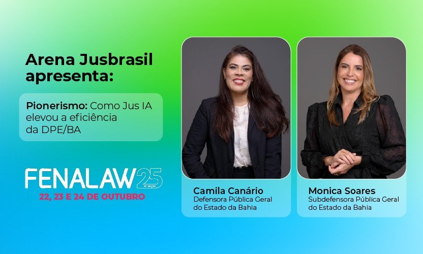 No dia 22 de outubro, às 17h30, na Arena Jusbrasil, a defensora pública geral Camila Canário e a subdefensora pública geral Mônica Soares participarão do painel “Pioneirismo: Como Jus IA elevou a eficiência da DPE-BA”, destacando como a inovação tecnológica tem transformado a rotina da instituição e aumentado a eficiência no atendimento à população.