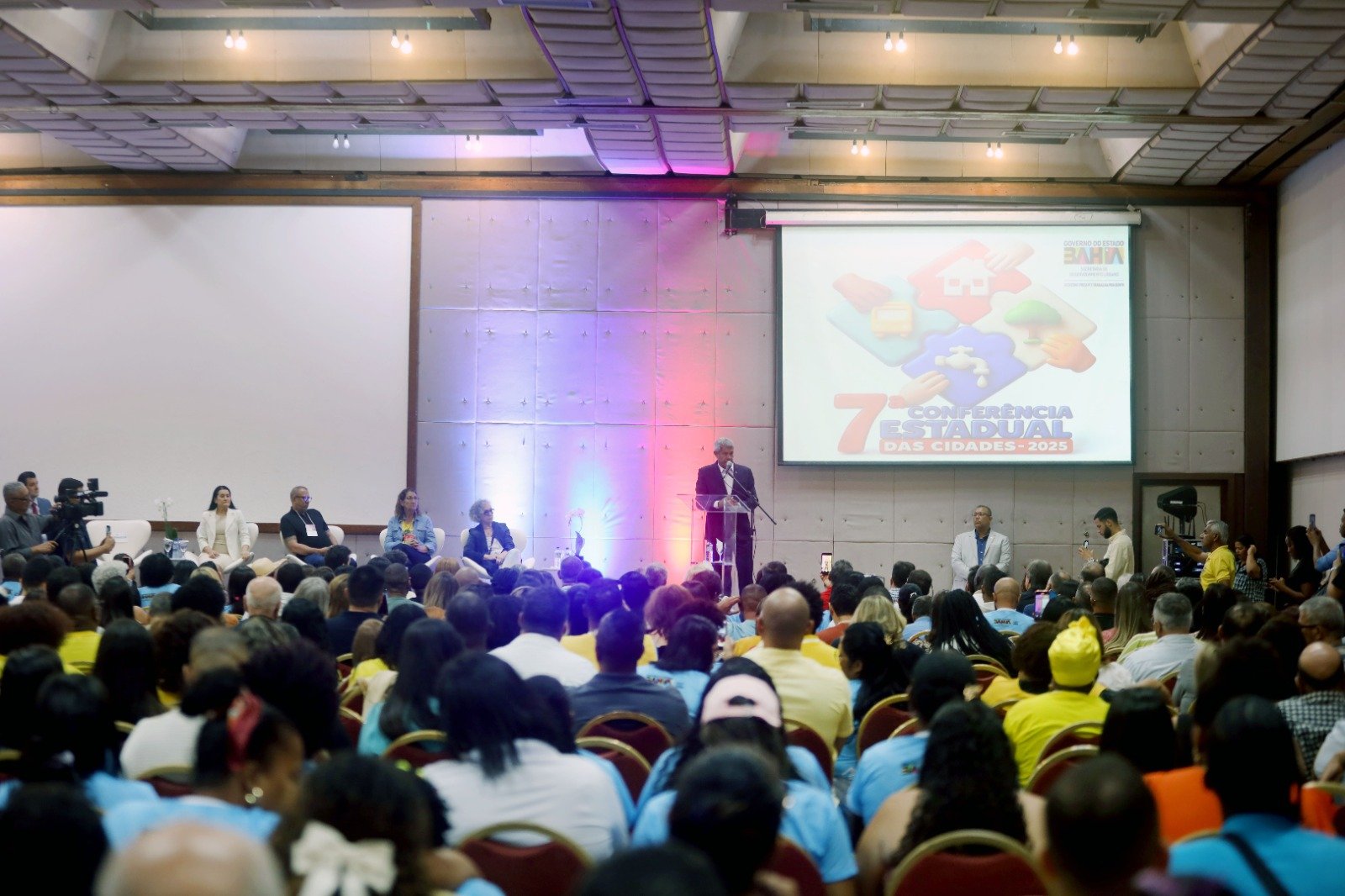 Nesta terça-feira (9), o governador Jerônimo Rodrigues participou da abertura da 7ª Conferência Estadual das Cidades da Bahia, realizada no Fiesta Convention Center, em Salvador. O evento, que segue até a próxima sexta-feira (12), traz como tema “Construindo a Política de Desenvolvimento Urbano: Unindo campo e cidade para o desenvolvimento sustentável” e reúne representantes do poder público, sociedade civil organizada, movimentos sociais e especialistas ligados à agenda urbana e territorial do estado.
