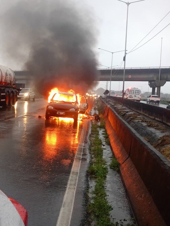 Equipe da Polícia Rodoviária Federal (PRF) atendeu a uma ocorrência de incêndio em veículo no km 604 da BR-324, em Simões Filho (BA). O automóvel GM/Classic Spirit transitava normalmente pela rodovia quando o fogo teve início, se espalhando rapidamente e consumindo o carro por completo.