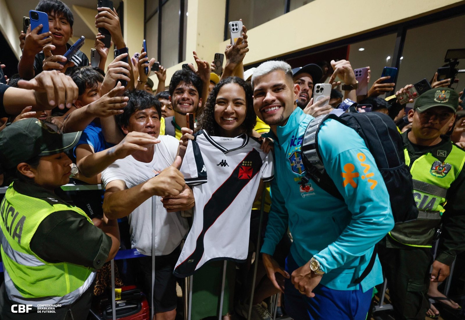 A Seleção Brasileira desembarcou no Aeroporto Internacional Viru Viru, em Santa Cruz de La Sierra, na noite desta segunda-feira (8), véspera do duelo com a Bolívia, pela rodada final das Eliminatórias. A Amarelinha foi recepcionada por fãs locais e distribuiu fotos e autógrafos.