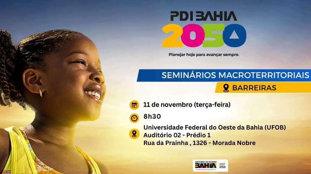 Estamos prontos para mais uma etapa do Seminário Macroterritorial do PDI Bahia 2050, onde vamos dialogar com os Territórios da Bacia do Rio Grande, Bacia do Rio Corrente e Velho Chico sobre os caminhos do desenvolvimento regional, destacando seus principais ativos econômicos, sociais e ambientais.