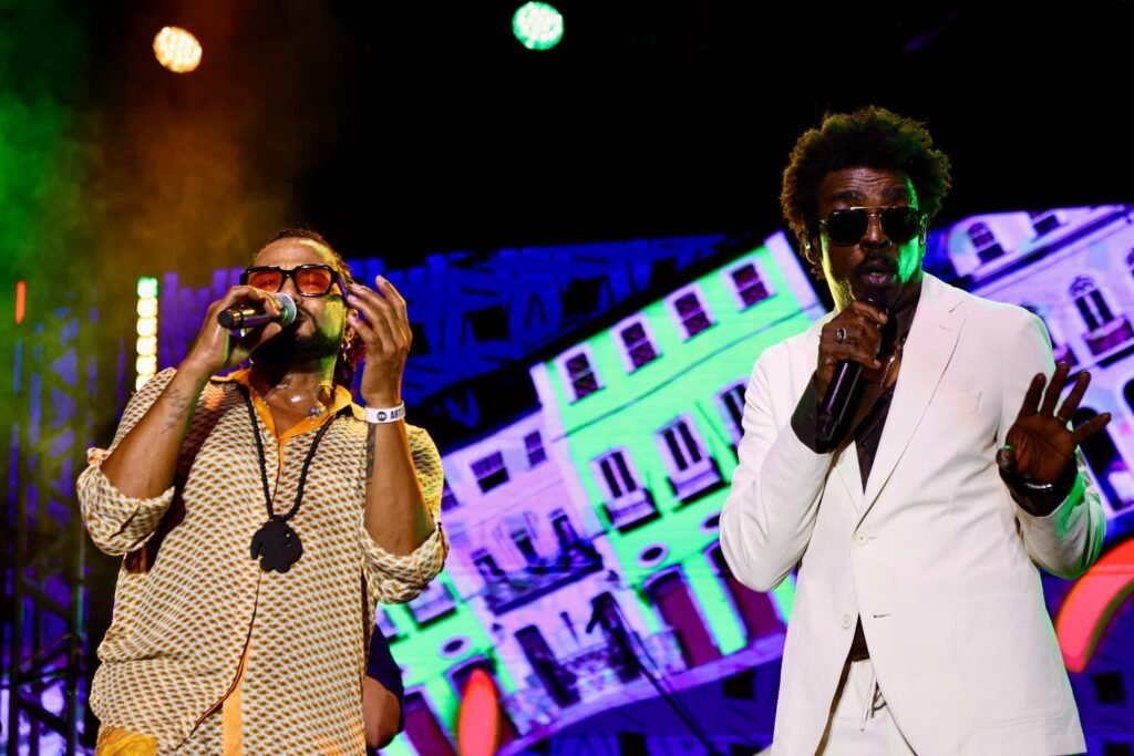 Magary Lord, criador do black-semba e voz potente da nova geração da música preta baiana, comemorou o retorno à capital. “Estávamos ansiosos para chegar em Salvador. Nossa ideia deu super certo. É um baile dançante, feliz, colorido para a galera. Eu me diverti demais e sei que o público também”, contou. Peu Meurray, percussionista e artista plástico reconhecido por transformar pneus em instrumentos, reforçou o caráter simbólico da parceria, que une arte, sustentabilidade e amizade.